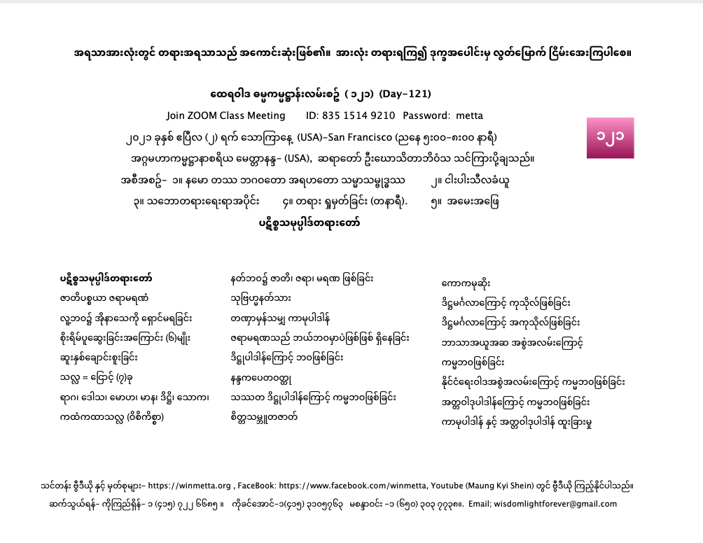ထေရဝါဒ ဓမ္မကမ္မဋ္ဌာန်းလမ်းစဥ် (၁၂၁)