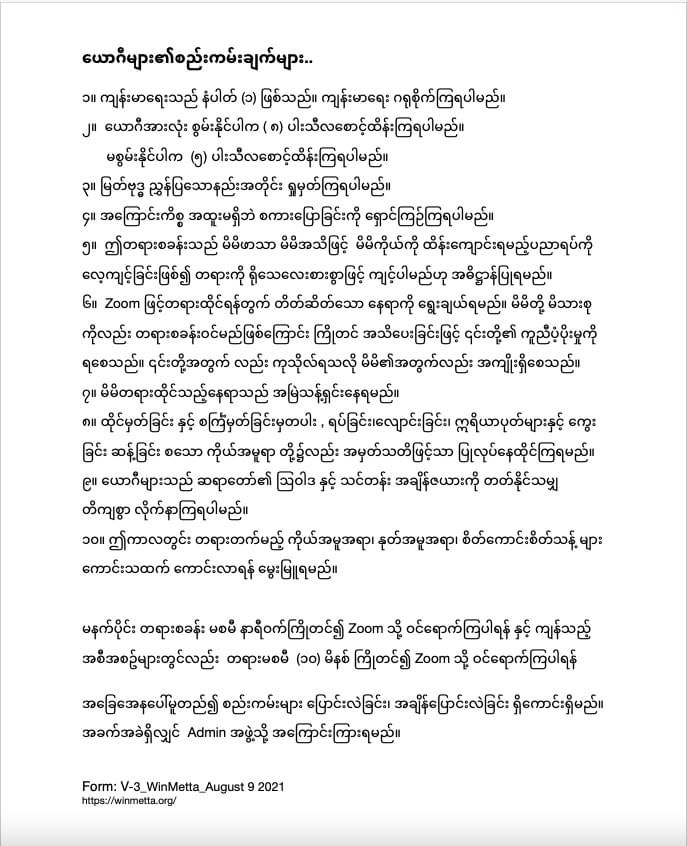 တတိယအကြိမ် Zoom Online (၁၀) ရက်တရားစခန်း
